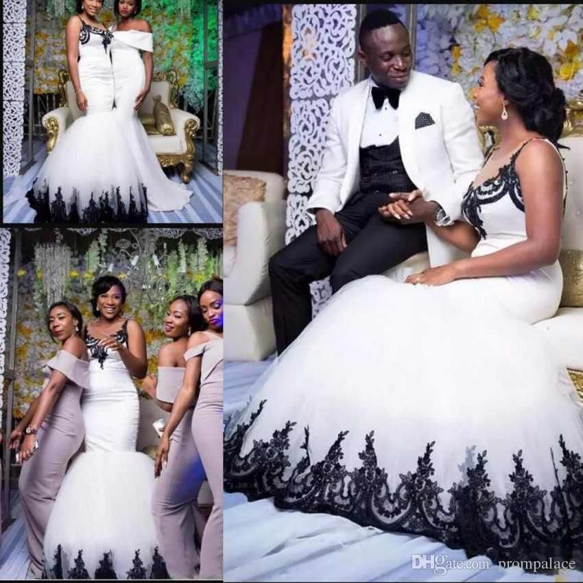 Details About Modest Black And White Mermaid Wedding Dresses Vintage Plus Size Bridal Gown