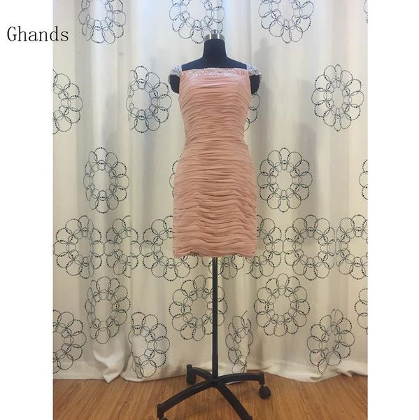 Ghands 2018 Cheap Jjshouse Sheath Column Ruffle Beading Short Elegant Plus Size Wedding Guest Formal Gowns Cocktail Dresses Custom Size Flowy