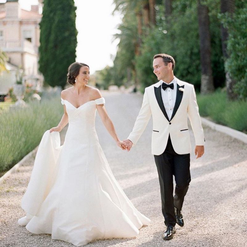 Discount Classy Off The Shoulder A Line Satin Bridal Gown Plus Size Zipper Back Sweep Train Country Garden Wedding Dresses Wedding Gown For Sale