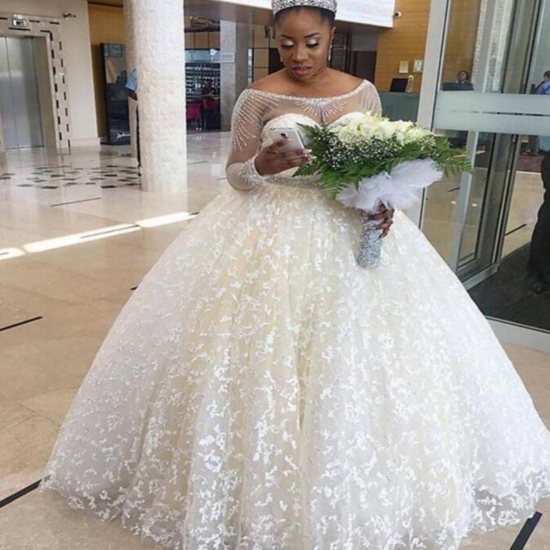 Ivory Ball Gown Wedding Dress South African Sheer Neck Long Sleeves Plus Size Bridal Gowns Lace Appliques Wedding Vestidos Custom Made