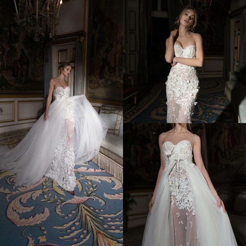 Discount Inbal Dror Mermaid Wedding Dresses Bridal Gowns With Detachable Train Illusion Floral Appliques Plus Size Wedding Dress Vestidos De Novia